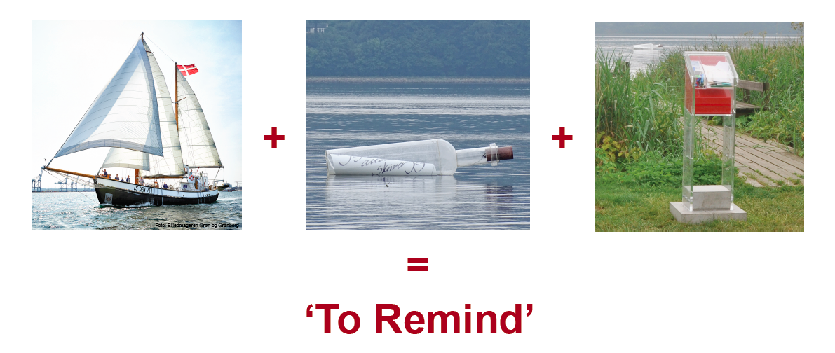 Måske har du prøvet det som barn. At stå i solnedgangen og være lige præcis den person i hele verden, der finder flaskeposten. Bare dig og en besked fra det ukendte. Kun adskilt af glas og en gammel korkprop. Eller også har du måske drømt om det. Nu kan denne drøm blive virkelighed. ’To Remind’ vil give oplevelser, åbne eventyr, skabe debat og eftertanke og invitere dig til at deltage i dette samtidskunstprojekt.